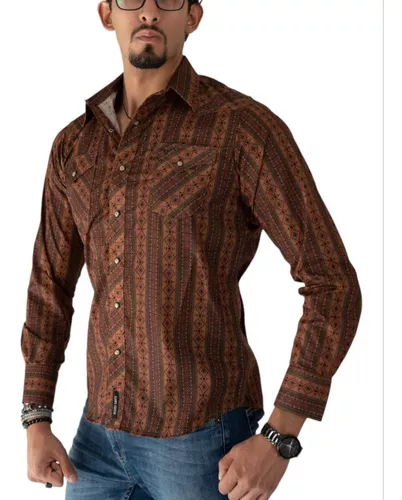 Camisa Vaquera Café Manga Larga Hombre Marca Rodeo Carte