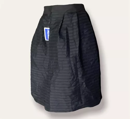 Falda acampanada elegante con corte tipo A, doble forro y diseño por la rodilla.