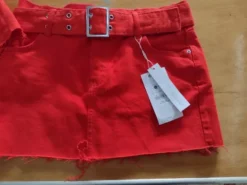 Falda Corta Con Cinturón Color Naranja De Mezclilla Marca Bershka Talla 36 Nuevo Original