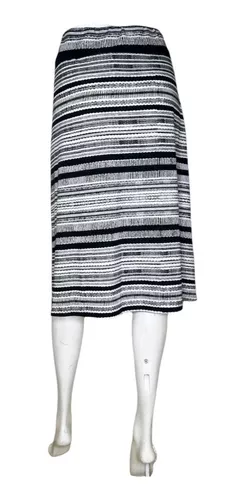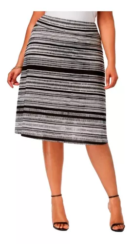 La falda de NY Collection presenta una tela de rayas gráficas y un dobladillo que llega debajo de la rodilla para mayor cobertura. Estilo sin cordones.