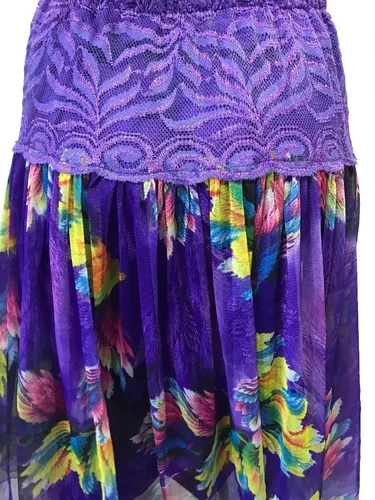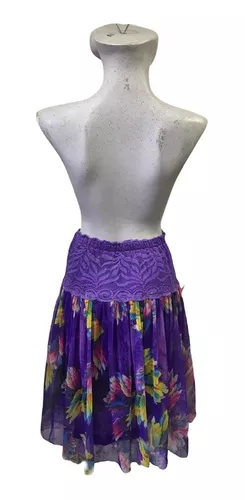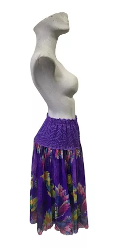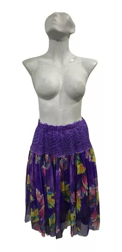 Falda Para Mujer Dama Morada Floreada Olanes Con Fondo