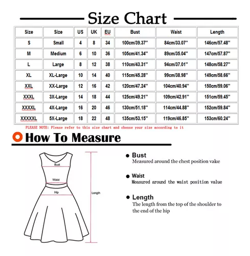 Talla: S: S: 4, Reino Unido: 8 UE: 34, busto: 100 cm/39,37 pulgadas, cintura: 84 cm/33,07 pulgadas, longitud: 146 cm/57,48 pulgadas, talla: