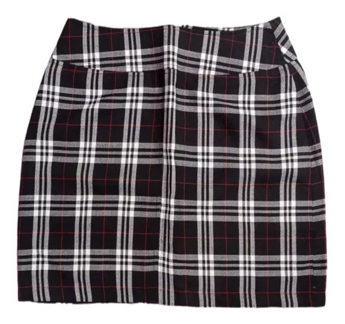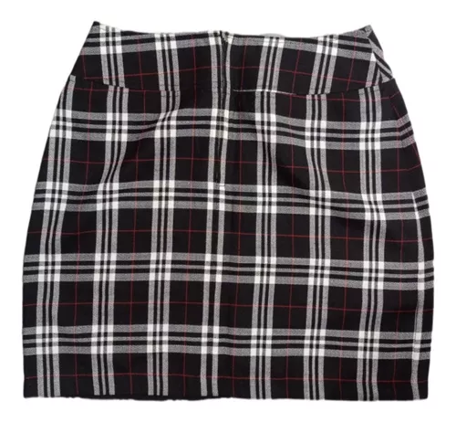 Linda falda negra a cuadros con cierre atrĂĄs, pretina ancha