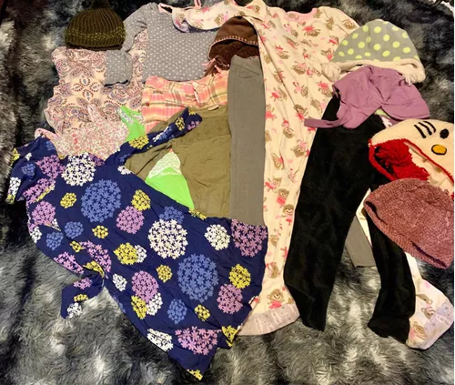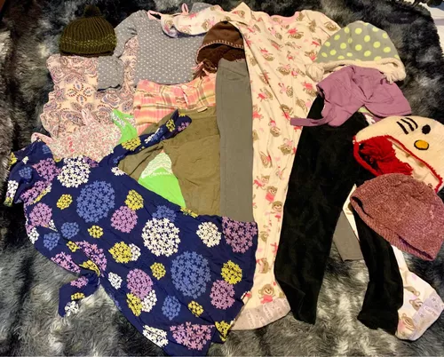 Lote de 18 piezas ropa para niña de 06 a 08 años compuesto por 01 mameluco, 06 gorros, 02vestido,01short,02 pantalones,05 playeras 01 mono short en perfecto estado