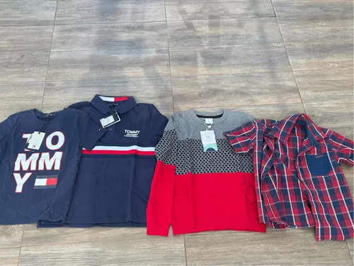 Son una camisa marca DKNY ( dice talla 6 pero es 10), un suéter marca bobolli talla 10, una playera marca TOMMY t.10, una playera marca Tommy t.10 tipo polo todo nuevo